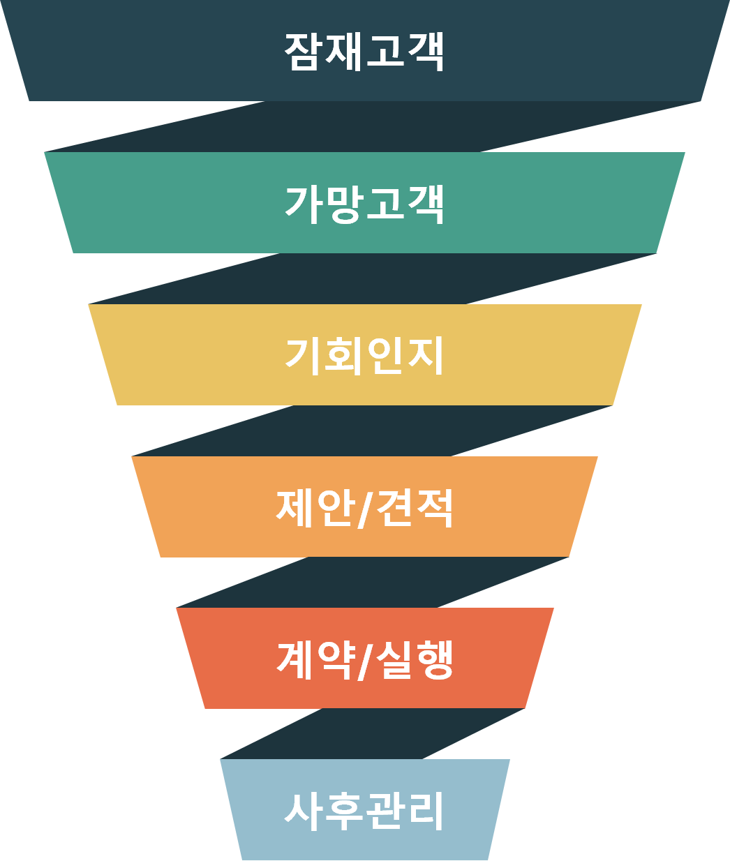 - 사후관리: 계약 및 실행 완료 후 고객을 관리하는 단계